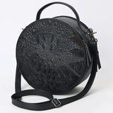 ADBG1563D Black Croc Embossed Round Leather Crossbody - Western Minimalist Purse