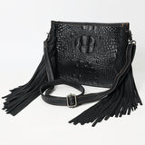 ADBG1579 Black Crocodile Embossed Leather Fringe Crossbody Bag