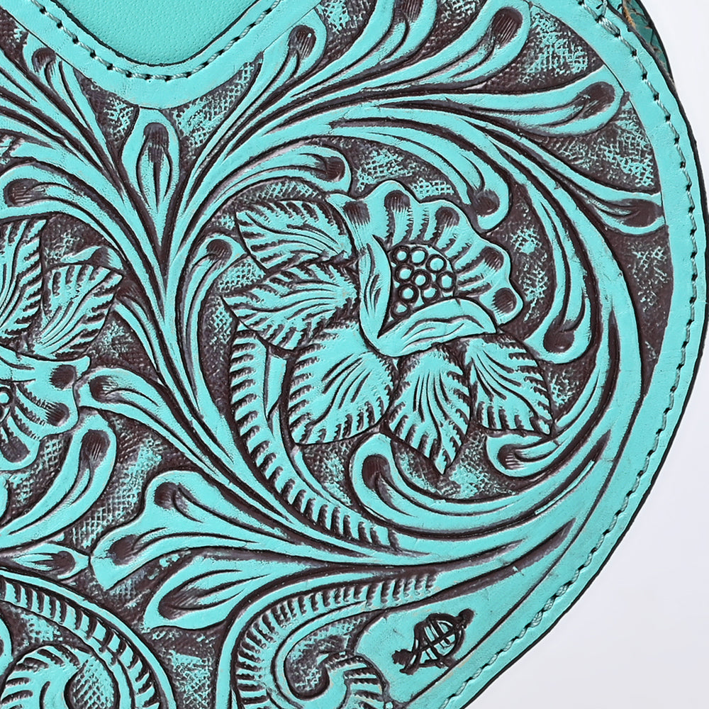 ADBGZ819 Heart-Shaped Hand-Tooled Leather Crossbody Canteen Bag with Chain Strap